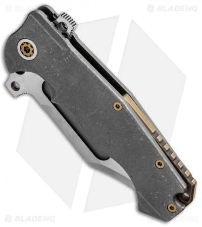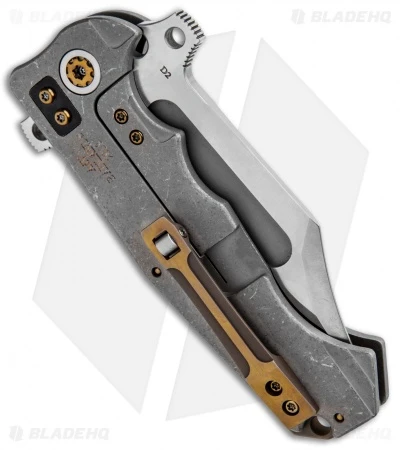 This model of the Andre de Villiers Badlands features a satin finished bowie blade made from heavy duty D2 steel. The titanium handle has a tumbled finish with bronze hardware and titanium backspacer.