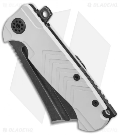 This Mini Cleaver from Andre de Villiers has a white Cerakote titanium handle with a black collar and backspacer. Its modified cleaver blade is made from CPM-S35VN steel. The Mini Cleaver folder is a beefy, solid built titanium frame lock knife with all the heft you’ll ever need. It offers an optimal shape that caters to in-hand comfort and control. Item includes a black backspacer with a hole for lanyard attachment and a milled titanium pocket clip.