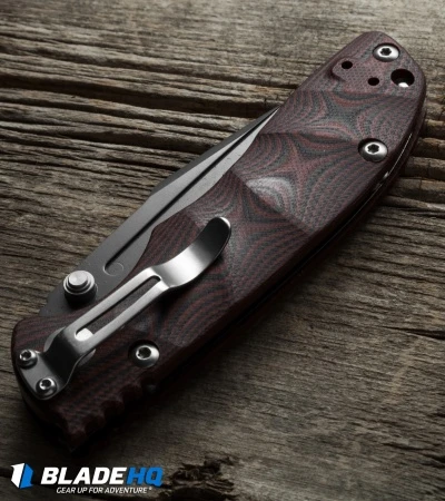 The Bolt is a standout knife from Kizer. It features a sculpted red/black G-10 handle that provides excellent ergos and great grip. A nested skeletonized liner and liner lock tab provide strength and ensure solid lockup of the blade. Tip-up or down carry is accommodated with the reversible pocket clip. The blade is made from VG-10 stainless steel and gray titanium coated.